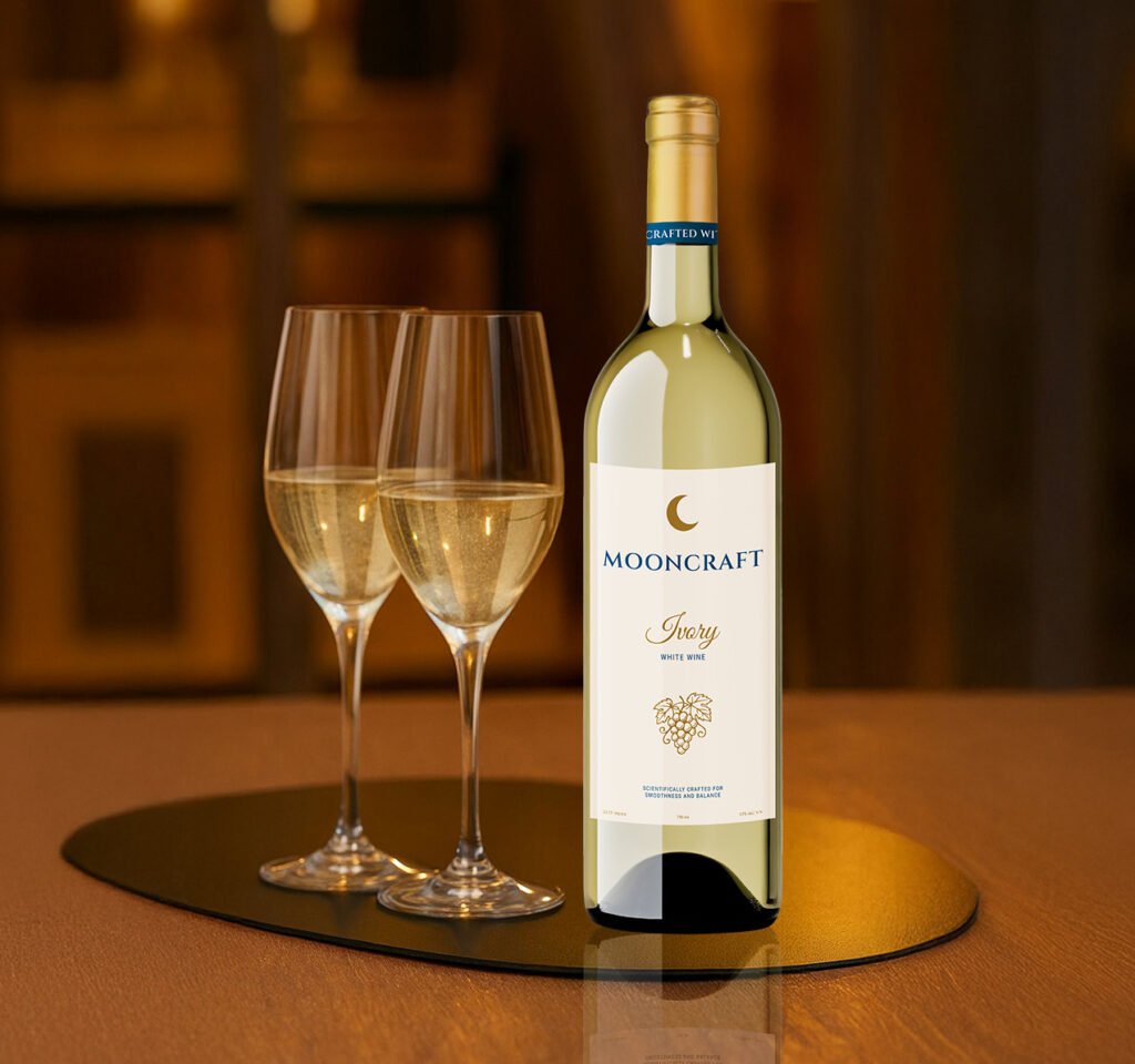 MOONCRAFT WHITE is a luminous, modern white wine — vibrant yet gentle, with soft fruit notes and a crisp mineral finish. Designed to uplift any moment with lightness, it is the ultimate fusion of orchard fruit elegance and clean winemaking.